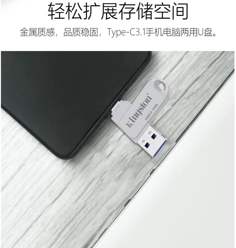 金士頓Type-c手機電腦兩用U盤128G高速USB3.1華為小米安卓OTG優盤